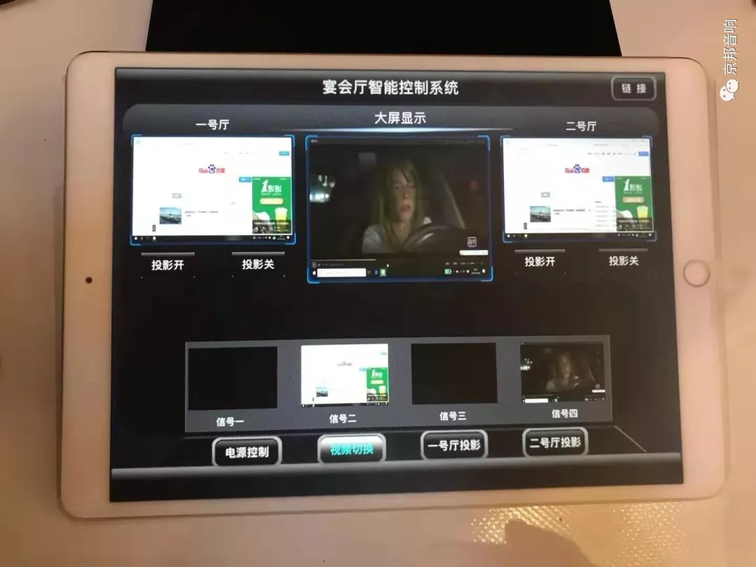 中控系統(tǒng):為了宴會廳內(nèi)各系統(tǒng)設(shè)備的順利使用和管理,采用中央控制系統(tǒng)進行統(tǒng)一管理和控制。通過中央控制系統(tǒng)來控制顯示屏、DVI矩陣、音頻矩陣切換器、音響系統(tǒng)等所有設(shè)備的電源開關(guān),顯示屏等信號切換以及DVD、攝像機等各種視頻信號切換??赏ㄟ^單鍵實現(xiàn)多種功能同時動作。